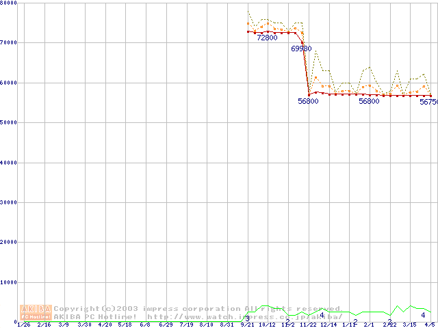 Socket 603 (micro-PGA,FSB 400MHz,L2 512KB,Prestonia)の最安値推移