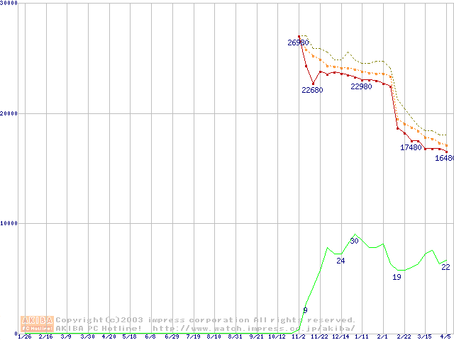 Socket A (OPGA,FSB 266MHz,L2 256KB,Thoroughbred)の最安値推移