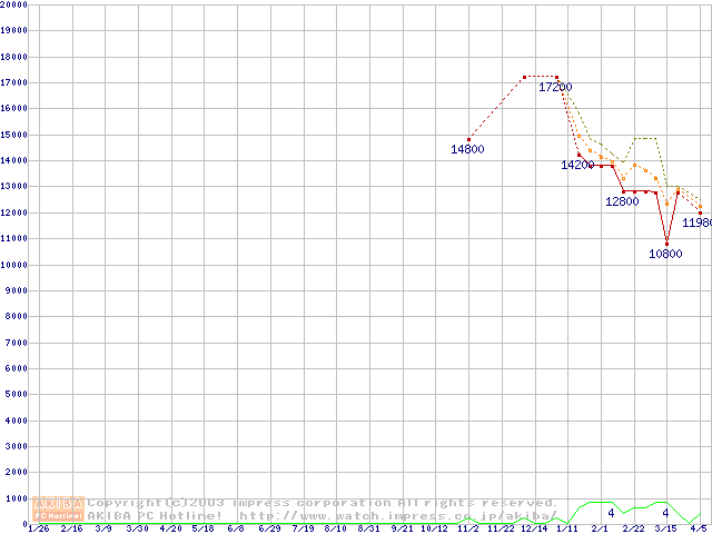 PC3500(DDR433) DDR SDRAM DIMMの最安値推移