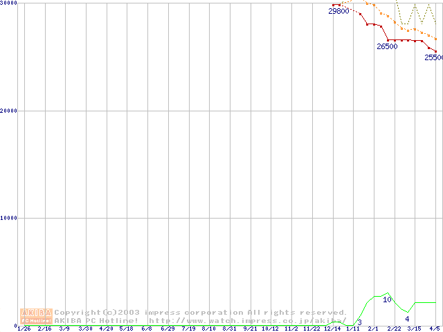 Socket 604 (micro-PGA,FSB 533MHz,L2 512KB,Prestonia)の最安値推移