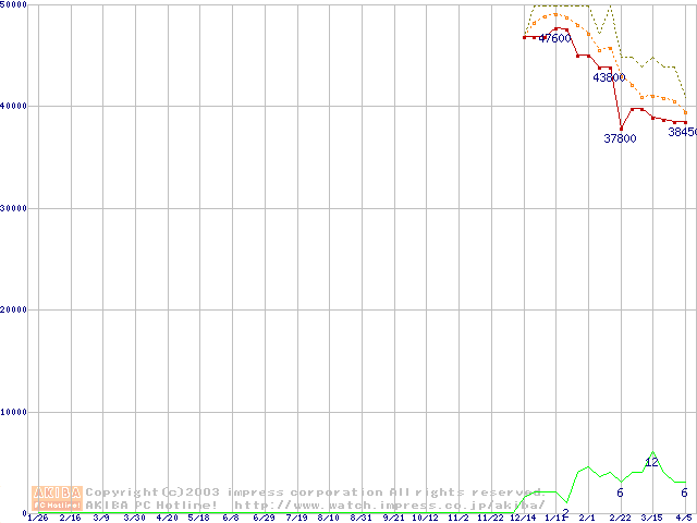 Socket 604 (micro-PGA,FSB 533MHz,L2 512KB,Prestonia)の最安値推移