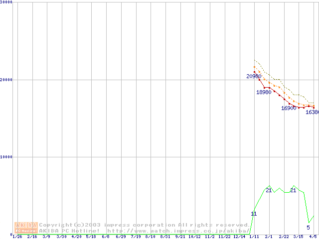 Barracuda ATA V (7200rpm,UltraATA/100,8MB,60GB/Platter,FDB)の最安値推移