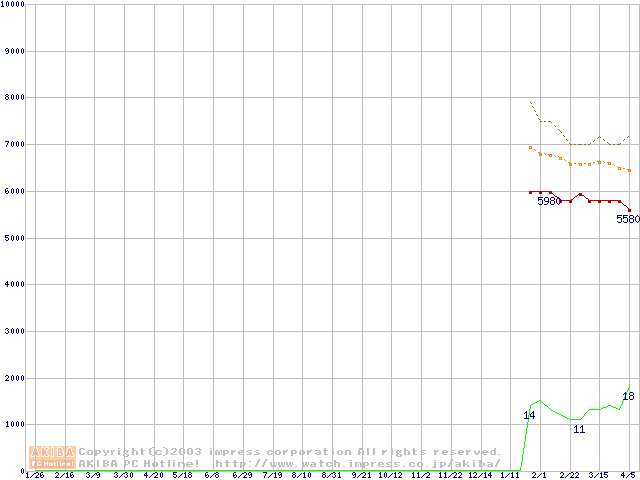 Socket A (OPGA,FSB 266MHz,L2 256KB,Thoroughbred)の最安値推移