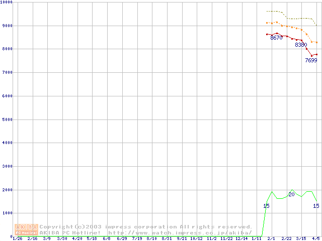 Socket A (OPGA,FSB 266MHz,L2 256KB,Thoroughbred)の最安値推移