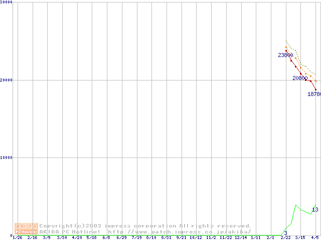 Socket A (OPGA,FSB 333MHz,L2 512KB,Barton)の最安値推移
