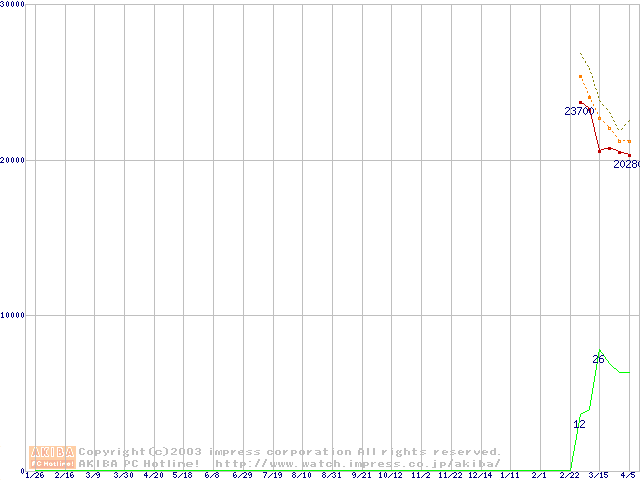 Socket A (OPGA,FSB 333MHz,L2 512KB,Barton)の最安値推移