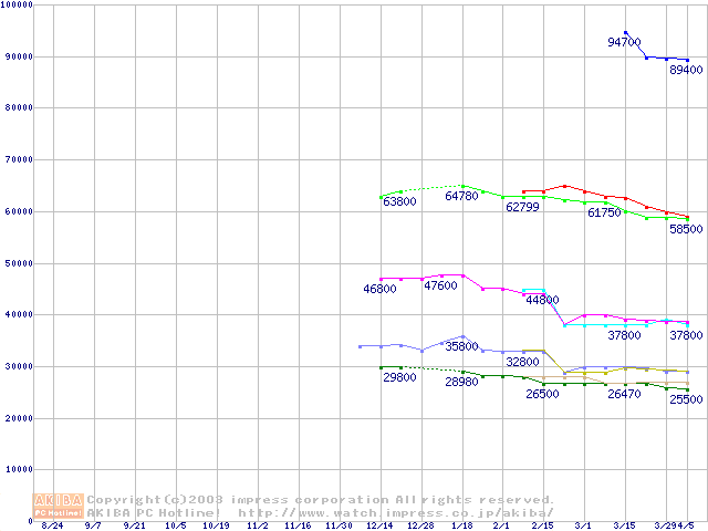 | [↓次グラフ]: | Socket 603 (micro-PGA,FSB 400MHz,L2 512KB,Prestonia)の最安値推移 |