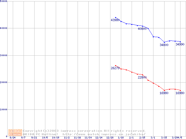 | [↑前グラフ]: | DiamondMax Plus 8 (7200rpm,2MB,UltraATA/133,FDB)の最安値推移 |