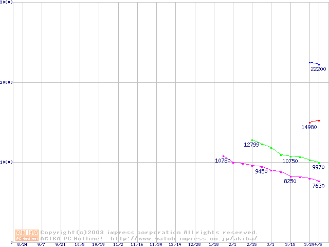 | [↑前グラフ]: | Fireball 3 (5400rpm,UltraATA/133,2MB,BB)の最安値推移 |