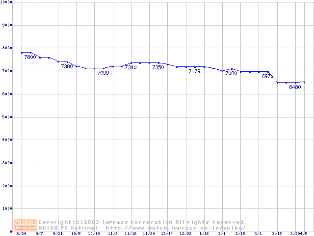 | [↓次グラフ]: | WD Raptor (10000rpm,UltraATA/100,8MB)の最安値推移 |