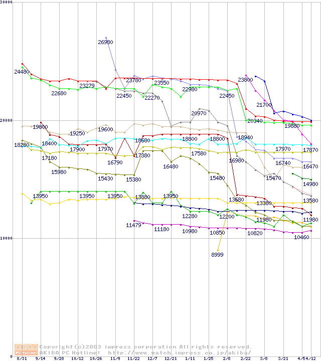 CPU主要製品(最安値2万円~3万円未満)の最安値推移