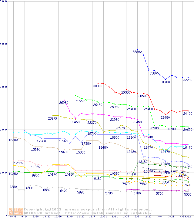 Socket A・FSB 200MHzの最安値推移