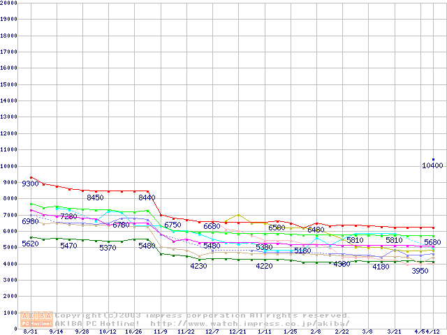 Socket 370・FSB 133MHzの最安値推移