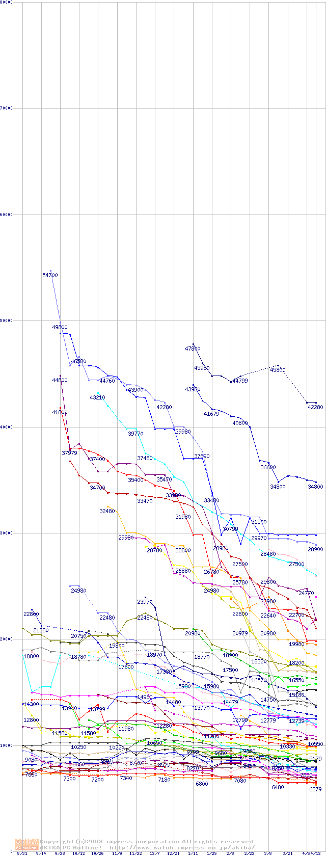 HDD主要製品の最安値推移