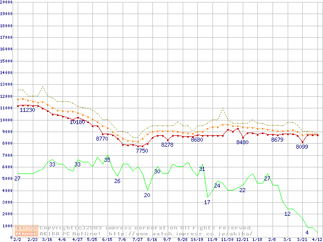 HDD主要製品の最安値推移