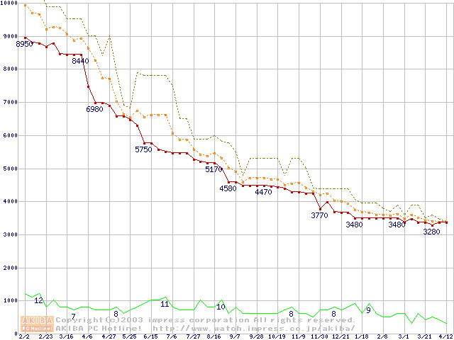 Socket A・FSB 200MHzの最安値推移