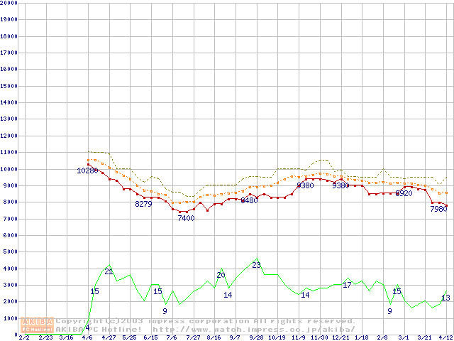 Deskstar 120GXP (7200rpm,2MB,UltraATA/100,BB)の最安値推移