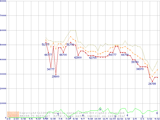 PC2100(DDR266) DDR SDRAM DIMM(CL 2.5)の最安値推移