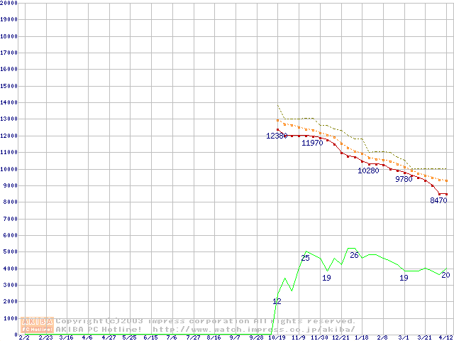 HDD主要製品の最安値推移
