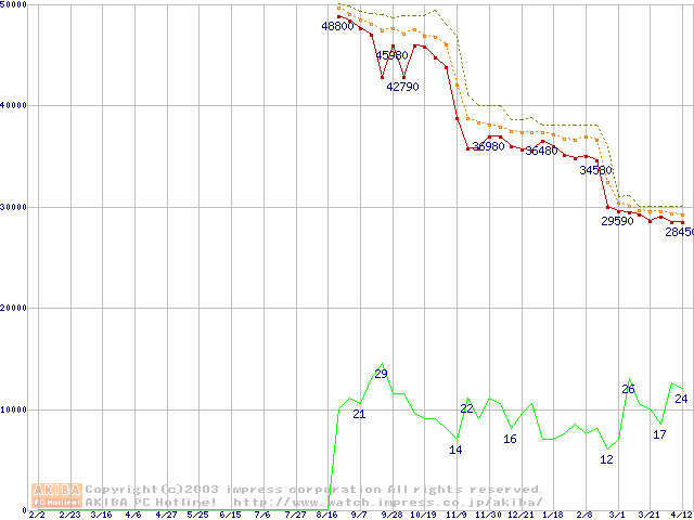 Pentium 4 2.66GHz リテールパッケージの価格推移