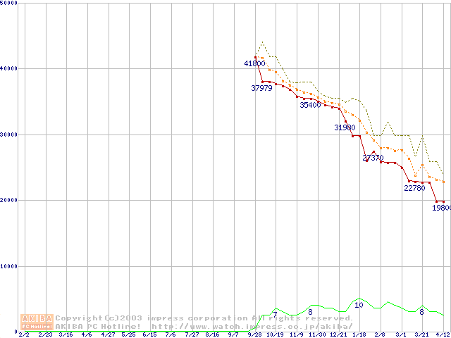 WD Caviar (7200rpm,UltraATA/100,2MB)の最安値推移
