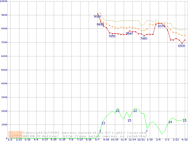 DiamondMax Plus 8 (7200rpm,2MB,UltraATA/133,FDB)の最安値推移