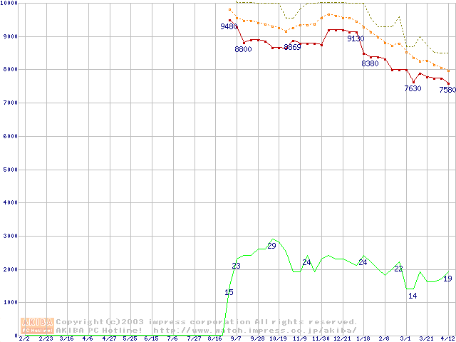 DiamondMax Plus 8 (7200rpm,2MB,UltraATA/133,FDB)の最安値推移