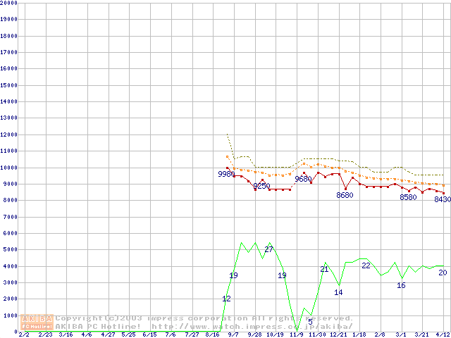DiamondMax 16 (5400rpm,UltraATA/133,2MB,80GB/Platter,FDB)の最安値推移