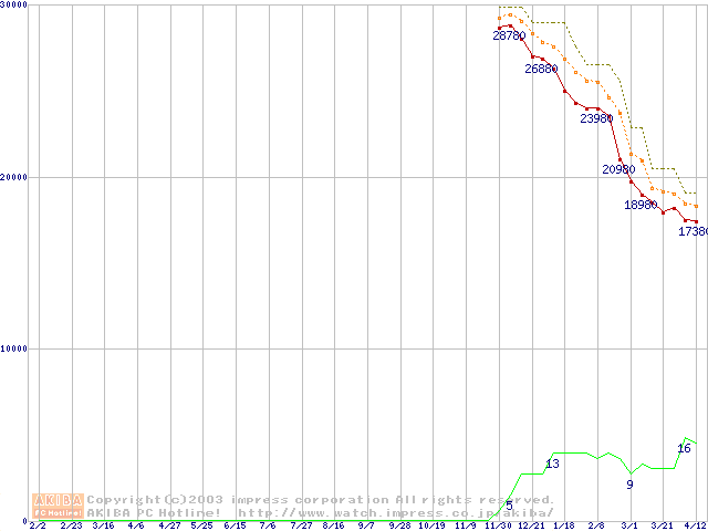 DiamondMax Plus 9 (7200rpm,2MB,UltraATA/133,FDB)の最安値推移
