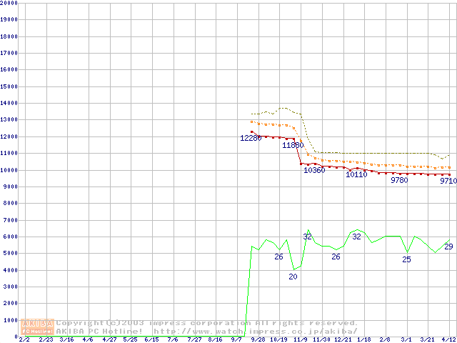 Socket 478 (micro-PGA,FSB 400MHz,L2 128KB,Northwood)の最安値推移
