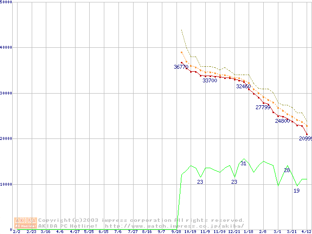 Deskstar 180GXP (7200rpm,8MB,UltraATA/100,FDB)の最安値推移