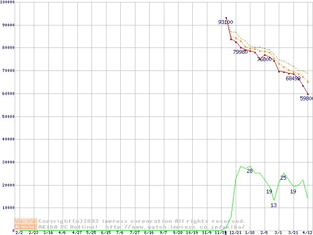Socket 478 (micro-PGA,FSB 533MHz,L2 512KB,Hyper-Threading,Northwood)の最安値推移