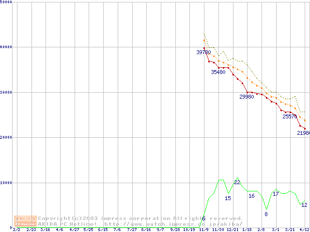 Socket A (OPGA,FSB 333MHz,L2 256KB,Thoroughbred)の最安値推移