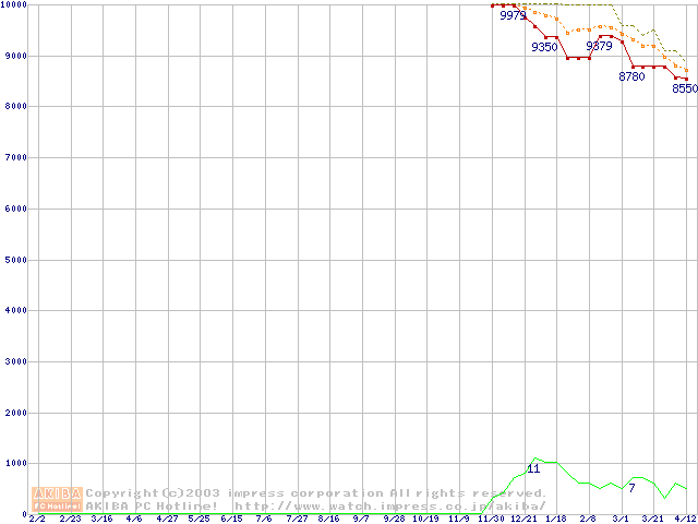 Deskstar 180GXP (7200rpm,2MB,UltraATA/100,FDB)の最安値推移
