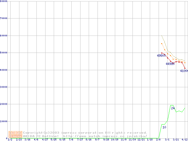 Socket A (OPGA,FSB 333MHz,L2 512KB,Barton)の最安値推移