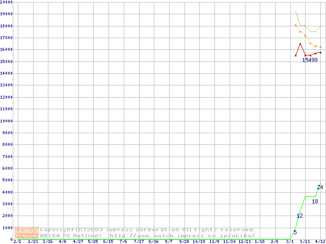 HDD主要製品(最安値1万5千円~2万円未満)の最安値推移