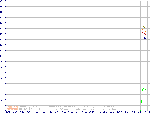 Socket 478 (micro-PGA,FSB 400MHz,L2 128KB,Northwood)の最安値推移