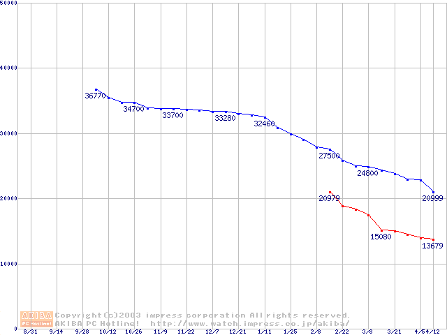 | [↓次グラフ]: | Deskstar 180GXP (7200rpm,2MB,UltraATA/100,FDB)の最安値推移 |