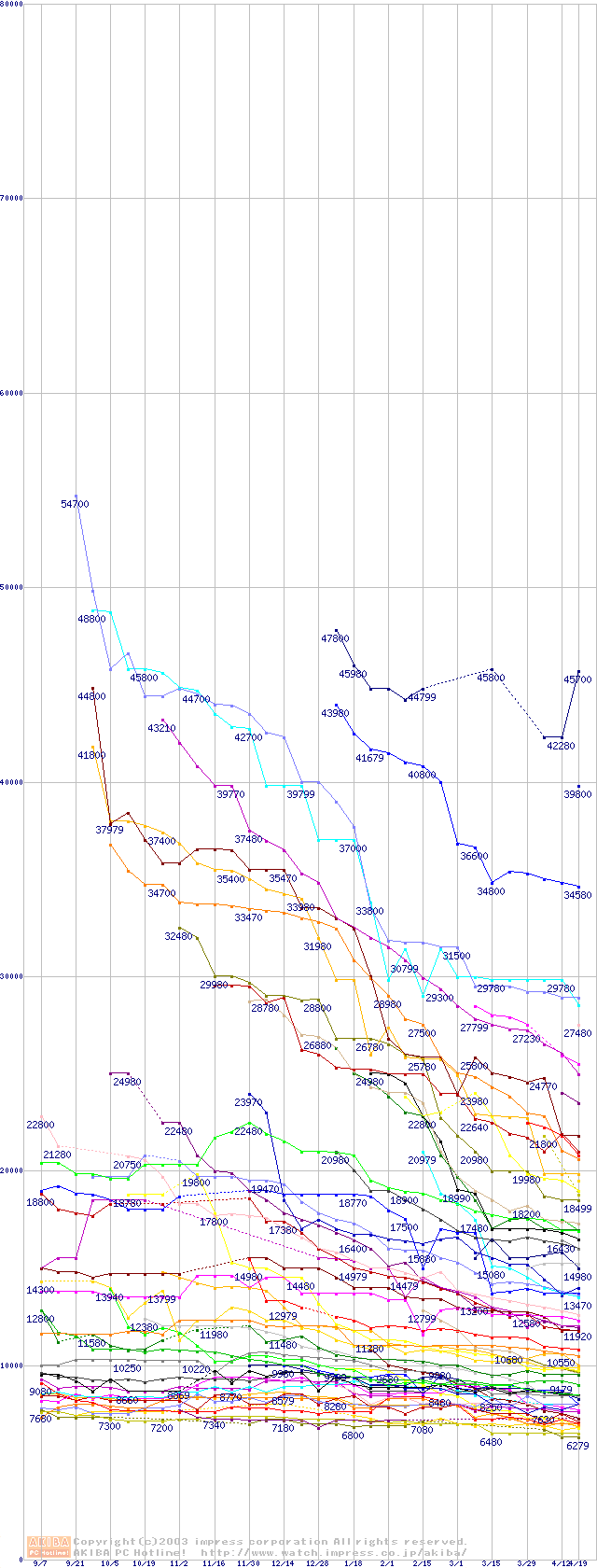 HDD主要製品の最安値推移
