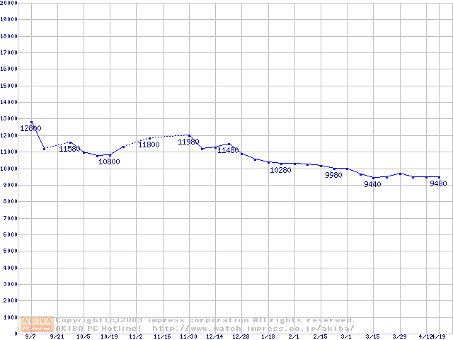| [↓次グラフ]: | HDD 100GB以上(5400rpmクラス)の最安値推移 |