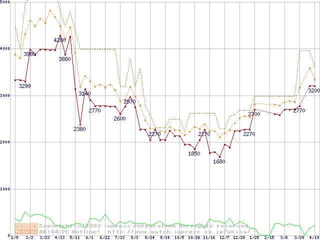 PC133 SDRAM DIMM CasLatency=2の最安値推移