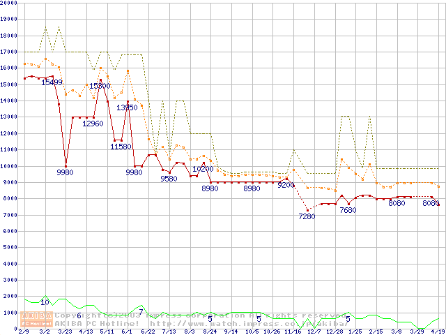 Socket A (PGA,FSB 200MHz,L2 256KB,Palomino)の最安値推移