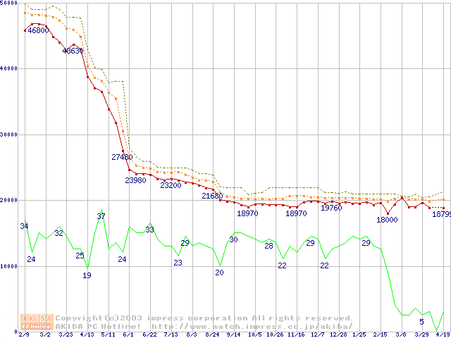 Pentium 4 2A GHz リテールパッケージの価格推移