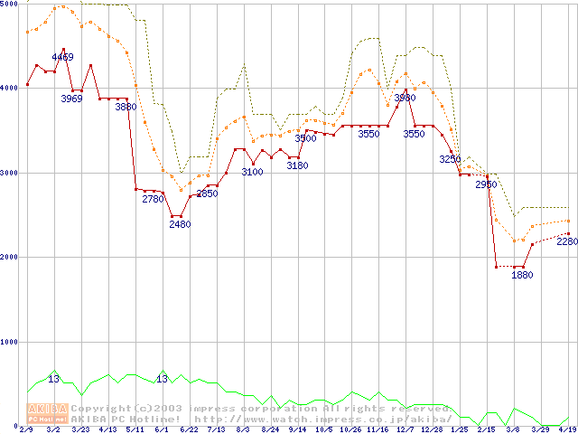 PC2100(DDR266) DDR SDRAM DIMM(CL 2.0)の最安値推移