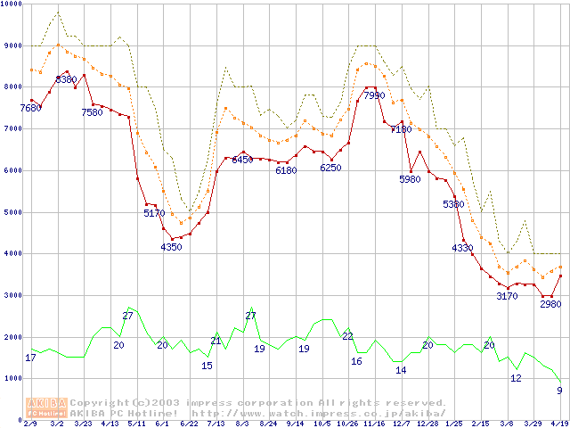 PC2100(DDR266) DDR SDRAM DIMM(CL 2.0)の最安値推移