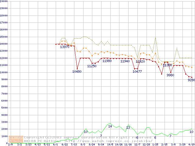 PC800-40 DRDRAM RIMM ECC対応の最安値推移