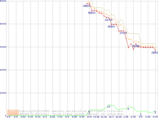 WD Caviar (7200rpm,UltraATA/100,2MB)の最安値推移