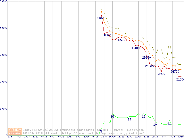 WD Caviar(Special Edition) (7200rpm,UltraATA/100,8MB)の最安値推移