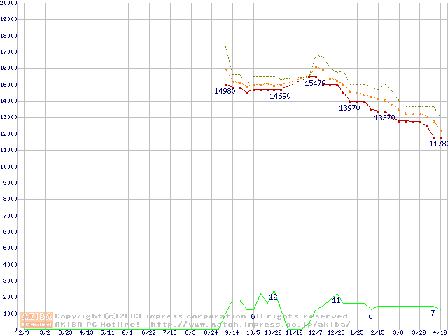HDD主要製品の最安値推移
