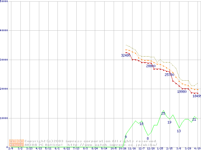 DiamondMax Plus 9 (7200rpm,8MB,UltraATA/133,FDB)の最安値推移